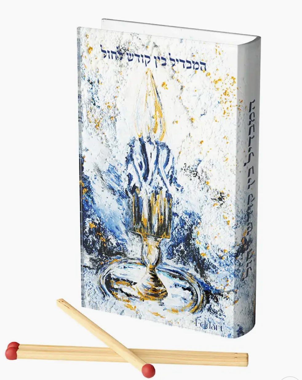 This striking Havdalah Matchbox features an inspiring Midnight Blue Havdalah scene. The beautiful design makes this practical and gorgeous addition to Havdalah.