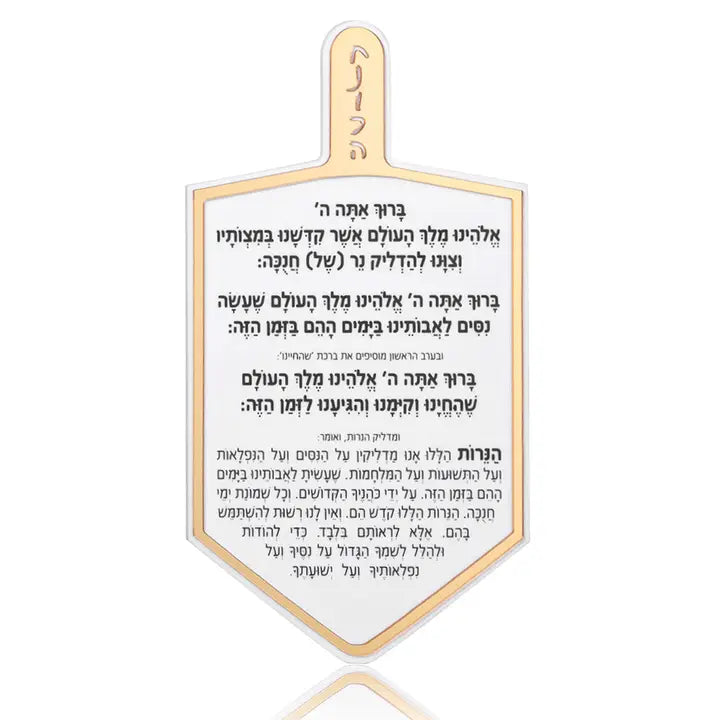 This gorgeous Classic Dreidel Card comes printed with the complete Chanukah Brachos. The perfect and practical addition to your Chanukah candle lighting! A perfect Chanukah gift, party favor or event handout. * Dimensions: 7"x4" * Double sided card with Maoz Tzur on the back