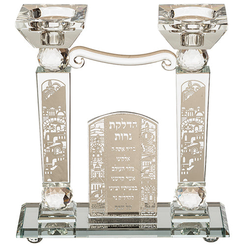 Crystal Candle Holder with Hadlakat Nerot Blessing