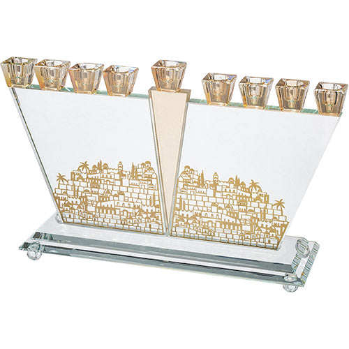 Elevate your holiday decor with our beautifully crafted fancy crystal menorah. This stunning piece features a elegant plaque, adding a touch of sophistication. Made with exceptional detail and quality, it's the perfect addition to any home and celebration.