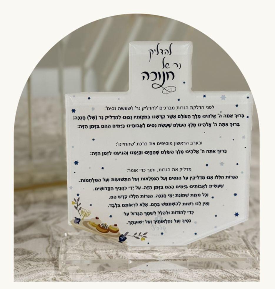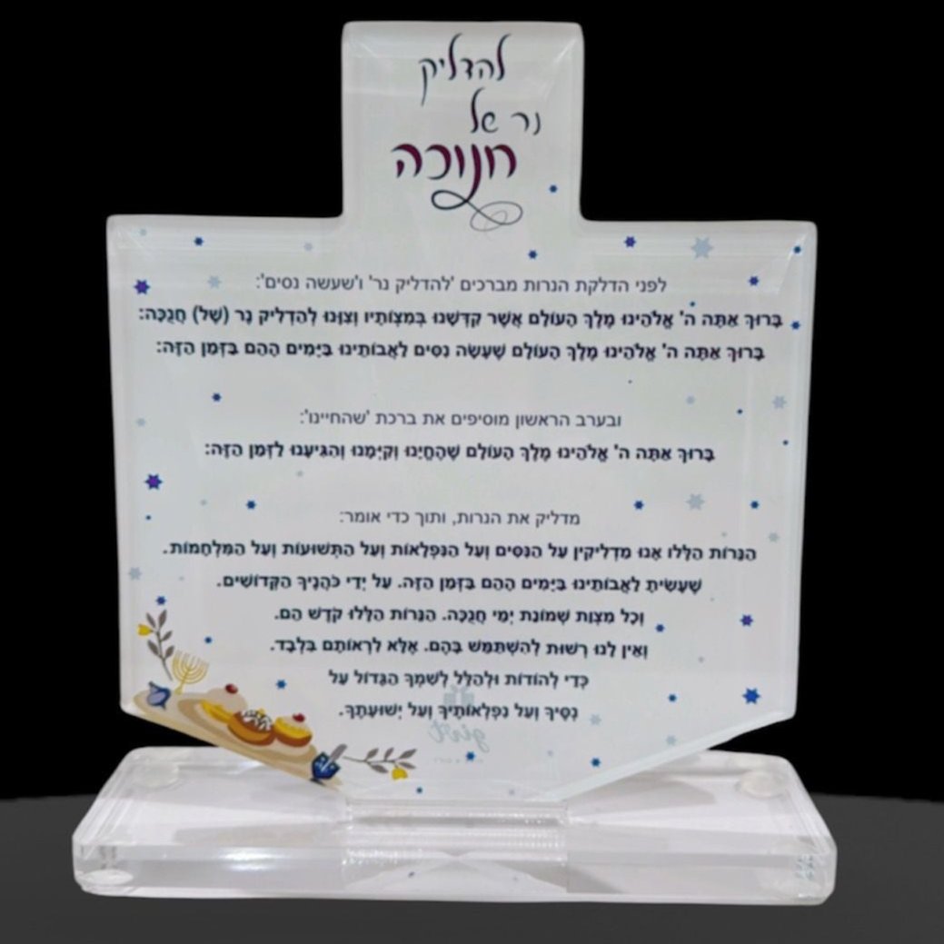 GIVT Exclusive Acrylic Hanukkah Blessing Stand - Dreidel Design