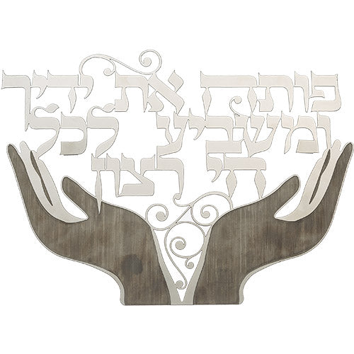 Striking wall art featuring the traditional "Open Hands" Blessing (Birkat Kohanim) in Silver Hebrew lettering, framed by elegant upturned hands. This substantial piece makes a bold and meaningful statement in any space.