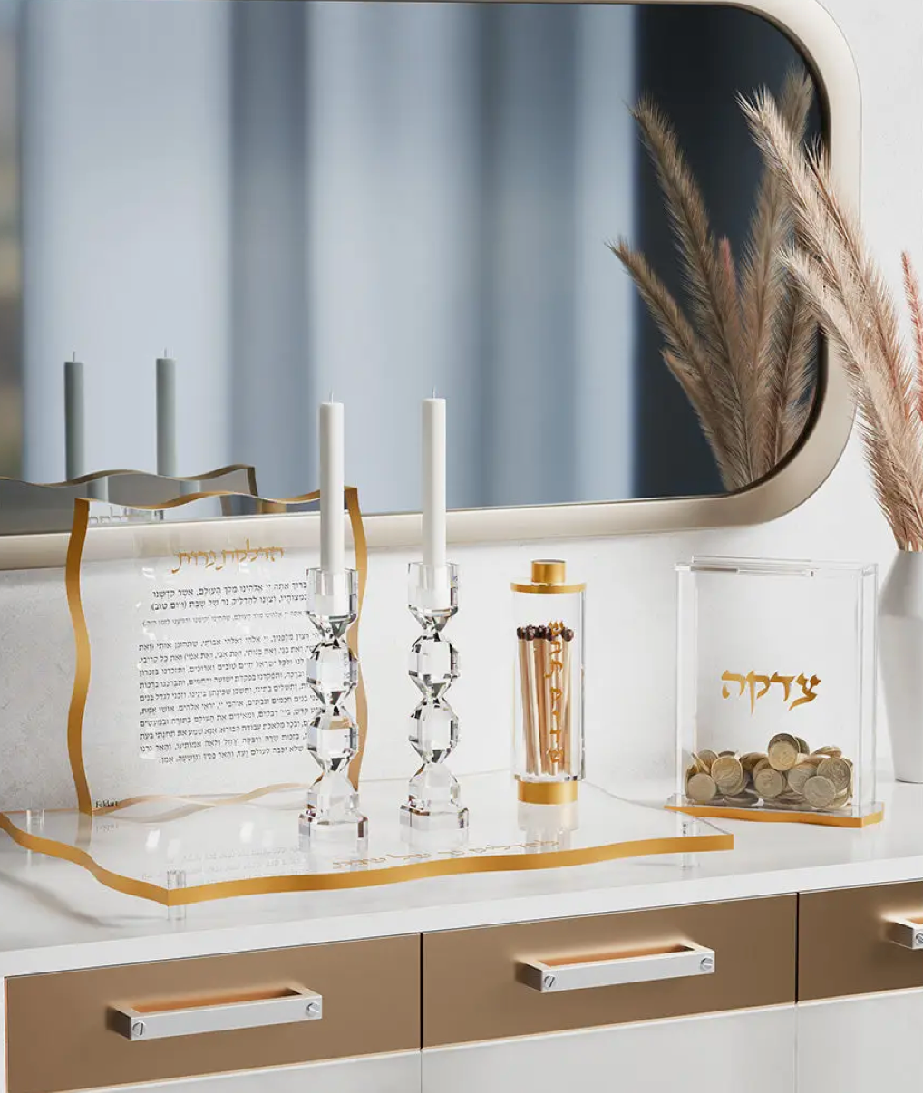A stunningly opulent Wave Tzedakah Box that will adorn the radiance of your Shabbos candles. An arresting and sophisticated accompaniment to any décor.